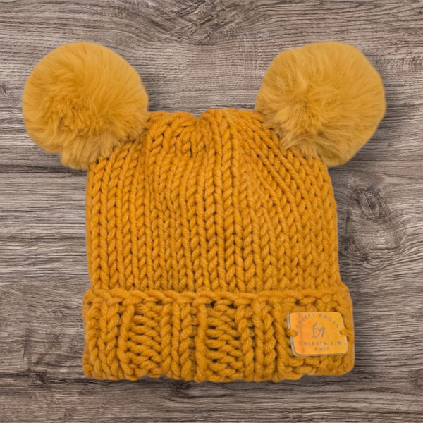 This hand-knitted, fashionable double Pom Pom hat made from soft, chunky merino wool guarantees comfort and softness for your child's delicate head while offering extra warmth in chilly conditions.
