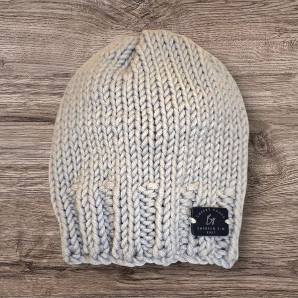 Hand knitted beanie hat made from the finest merino yarn. The soft texture ensures your child feels cozy, regardless of the weather. Each beanie features a stylish tag, making your little one the talk of the town.